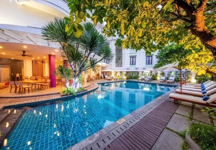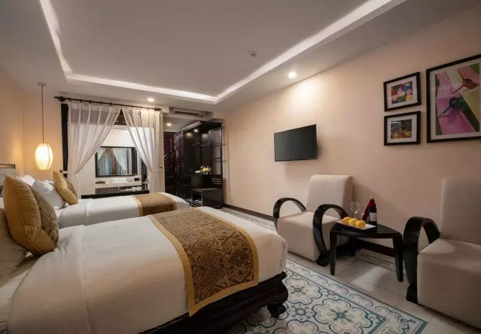 Detta enastående hotell är inspirerat av kolonialtidens stil och när du kliver in i lobbyn förs du tillbaka till det gamla Indokina. Stilen är romantisk och charmig med en modern prägel. Lokala konstnärer har skapat 250 unika oljemålerier som pryder de ljusa väggarna på hotellet.