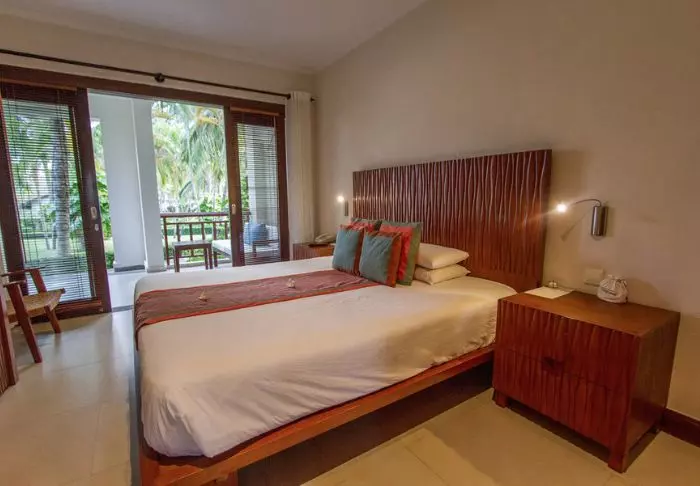 Du bor i en Garden Cottage som nås via små stigar genom hotellets grönskande trädgård, omgiven av palmer och blommor. Från terrassen framför rummet har du utsikt över din egen lilla trädgård, där du kan ha turen att hitta mogna passionsfrukter eller färgstarka orkidéer och hibiskus. Rummet är inrett i enkel stil med stengolv och stora fönster som släpper in ljuset. Dessutom finns en himmelssäng med myggnät, aircondition, takfläkt, wifi, minibar, kaffe- och tefaciliteter, värdeskåp samt badrum med regndusch, hårtork och toalettartiklar – allt du behöver för en avkopplande vistelse.
