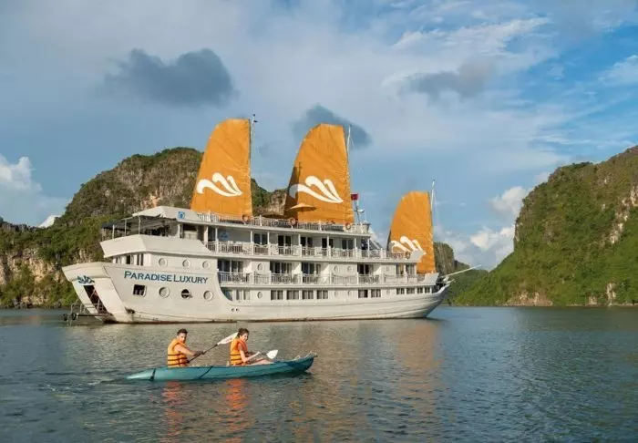 På det 5-stjärniga fartyget Paradise Sails får du möjlighet att uppleva Ha Long-buktens magiska natur från första parkett.