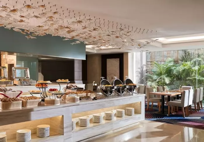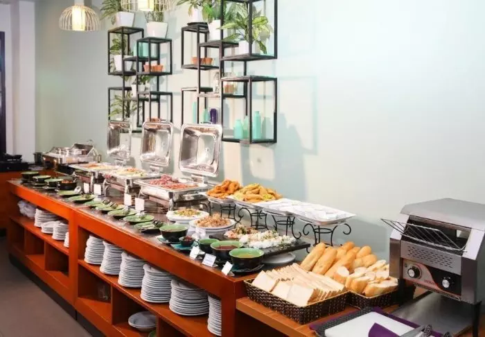 Frukosten serveras i hotellets restaurang i en avslappnad atmosfär och bjuder på både kontinentala och asiatiska rätter med bland annat färsk frukt, nybakat bröd, pannkakor och juice.