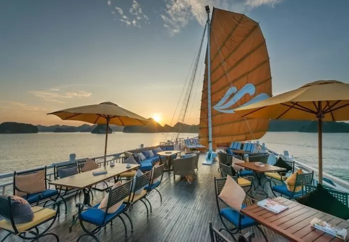 Indochina Sails tar seglingsupplevelsen på Ha Long-bukten till nästa nivå. Ombord på denna eleganta träbåt med endast 23 hytter känner du genast av en mer exklusiv atmosfär, där service, noggrannhet och stämning går hand i hand. Fartyget har i årtionden varit bland de mest välrenommerade i bukten och är känt för sin höga standard.