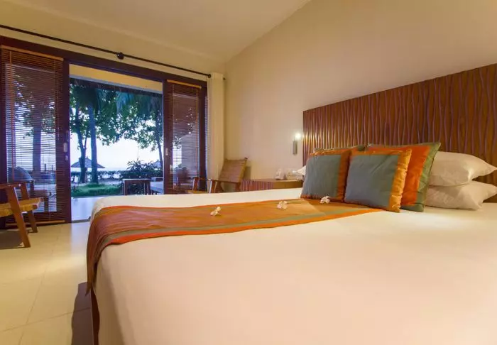 Resorten är byggd i elegant fransk kolonialtidsstil och är omgiven av tropiska trädgårdar. Den eleganta franska stilen fortsätter in i de 70 smakfullt inredda rummen som alla har wi-fi, luftkonditionering, säkerhetsbox, tv, kylskåp, te- och kaffekokare samt badrum. Från din balkong har du utsikt över vackra trädgårdar.