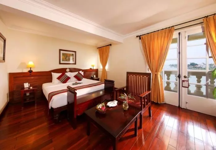 River View-rummen ligger på första våningen i huvudbyggnaden med fantastisk utsikt över Mekongfloden och de närliggande plantagerna. Inredningen är densamma som i Garden View-rummen, men här har du en egen balkong med loungemöbler där du kan koppla av och följa livet på floden medan båtar glider förbi.
