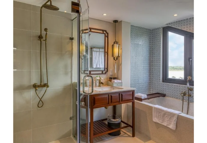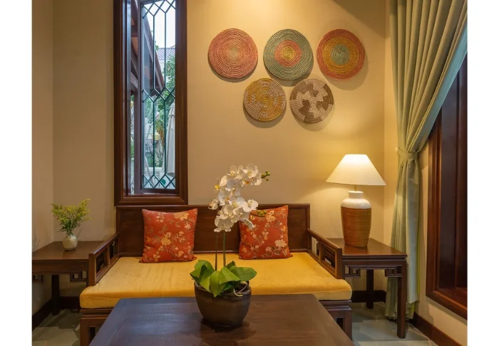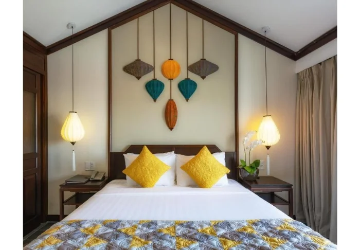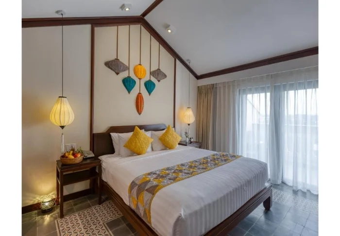 Du bor som utgångspunkt i ett deluxe-rum med balkong. Rummen är inredda i en ljus och inbjudande stil med trämöbler och färgglada detaljer inspirerade av vietnamesisk design. På väggen ovanför sängen hänger dekorativa lyktor som skapar en lokal atmosfär. Rummet har antingen en dubbelsäng eller två enkelsängar samt en liten sittgrupp. Här finns även aircondition, wifi, minibar, vattenkokare, värdeskåp och TV. Badrummet har både dusch och badkar samt hårtork, badrockar och toalettartiklar.