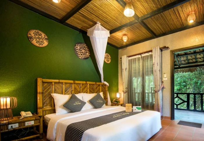 Mai Chau Ecolodge har skapats som ett ekoturismprojekt med stor respekt för naturen och det lokala samhället. Merparten av området är bevarat som öppna gröna ytor, och lodgen är byggd av naturliga och förnybara material som bambu, trä och sten, som har hämtats lokalt och använts med omsorg om omgivningarna. Här arbetar man aktivt med miljöhänsyn, lokal sysselsättning och ansvarsfull turism, och de flesta av medarbetarna kommer från de omkringliggande byarna och tillhör det lokala Thai-folket. Din vistelse bidrar därför till att stödja lokalsamhället och till att bevara både natur, kultur och levnadssätt i området. Läs mer om hotellets hållbarhetspolicy här.
