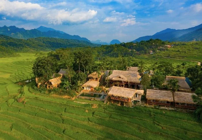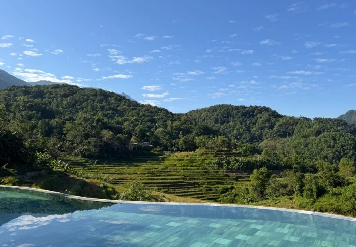 PuLuong Natura ligger mitt i det fridfulla Pu Luong-området, där risfälten breder ut sig i mjuka terrasser mot de gröna bergen. Från hotellet leder små stigar dig genom landskapet, och på gångavstånd hittar du charmiga kaféer och vardagsliv i byarna.