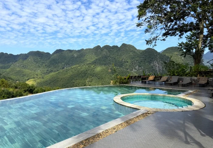 Efter dagens upplevelser kan du ta ett dopp i infinity-poolen med utsikt över dalen, njuta av solen på en solstol eller beställa en uppfriskande dryck från baren medan solen går ner bakom bergen.