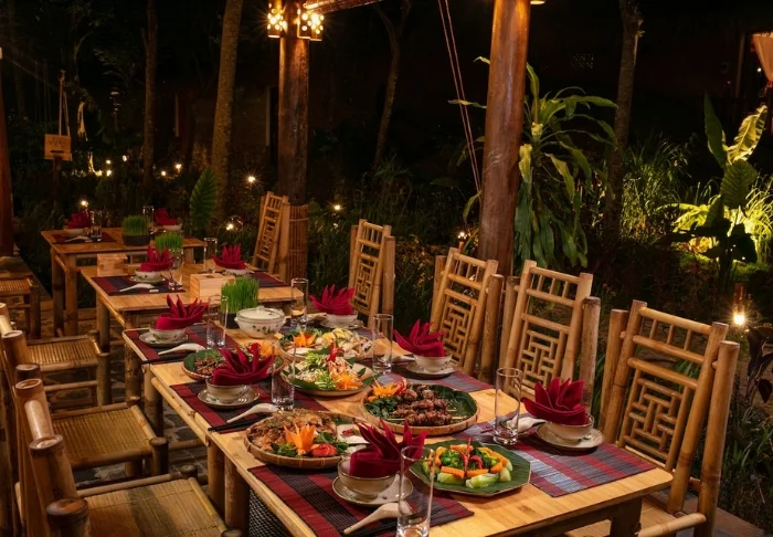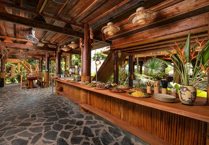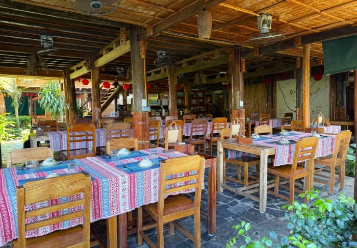 Restaurangen serverar frukostbuffé samt lokala rätter och vietnamesiska klassiker till lunch och middag.