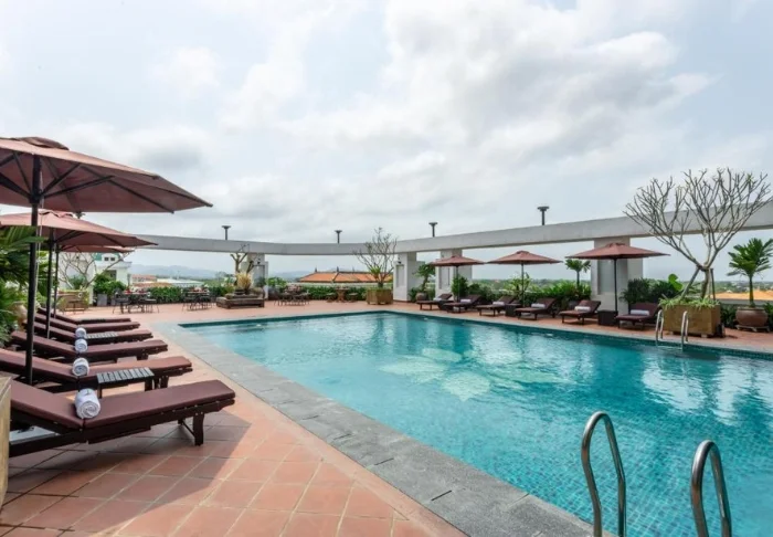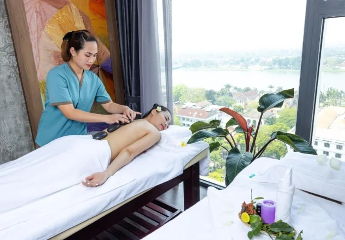 När du inte är ute och utforskar Hués kejsargravar och kungapalats kan du koppla av vid hotellets pool på fjärde våningen, där du har utsikt över stadens takåsar. Du har även möjlighet att mjuka upp axlarna med en massage i hotellets spaavdelning.