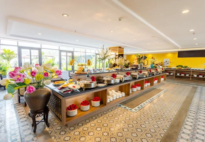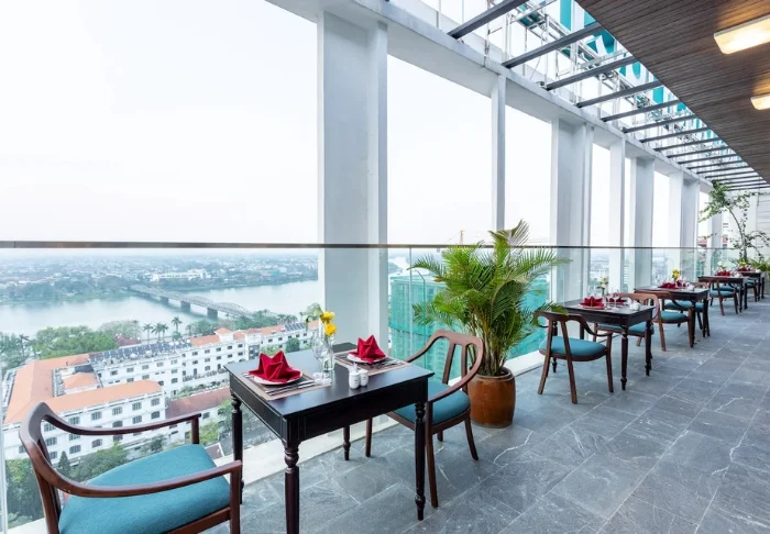 White Lotus Hué erbjuder flera trevliga restauranger och caféer, alla med sin egen unika atmosfär och utsikt. Frukosten serveras som buffé i Sen Restaurant på femte våningen, medan Lotus Restaurant, en våning upp, lockar med vietnamesiska och asiatiska rätter samt klassiker inspirerade av Hués kejserliga kök. På bottenvåningen hittar du Lotus House Coffee, ett mysigt café med både inomhus- och uteservering. Högst upp på sextonde våningen kan du njuta av en drink i Lotus Sky och samtidigt ta in panoramautsikten över staden och citadellet.