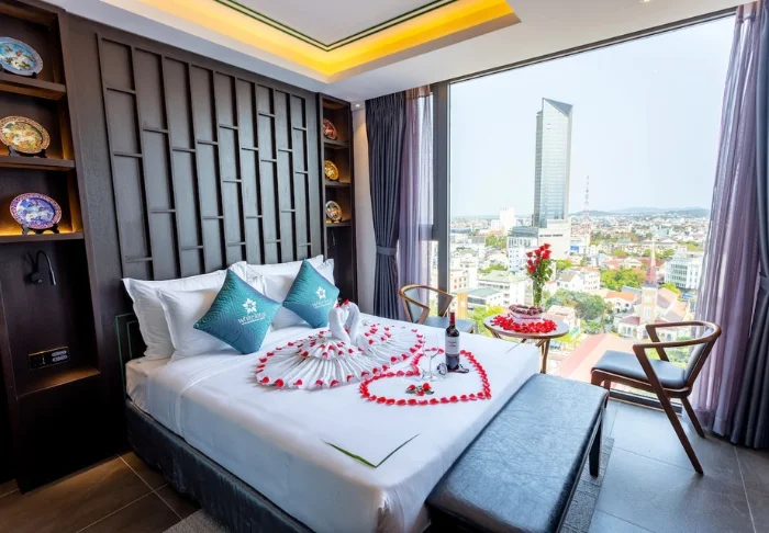 Hotellets rum är modernt inredda i vietnamesisk stil med mörka trädetaljer. Du bor som standard i rumstypen Superior Mountain View, där du genom rummets stora fönster kan njuta av utsikten över staden och de gröna kullarna som reser sig bakom. Här har du tillgång till bekvämligheter som aircondition, wifi, vattenkokare för te och kaffe samt tv. Badrummet är modernt, med separat duschutrymme och toalett.
