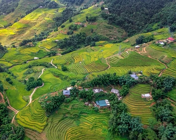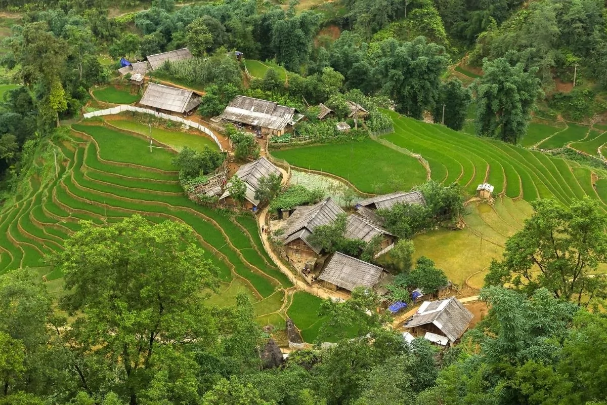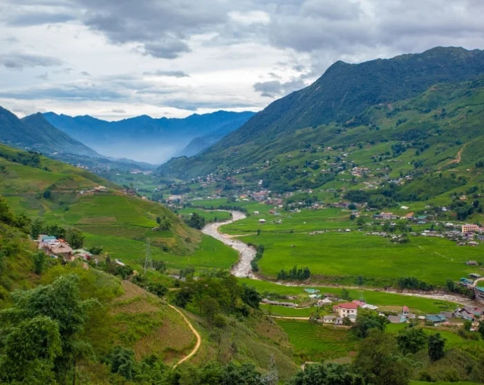 Därefter fortsätter du till en liten by som vackert ligger i Muong Hoa-dalen. Bilresan tar cirka en timme. Här startar en naturskön vandring på en och en halv till två timmar längs stigar som binder samman små bysamhällen i området. Rutten slingrar sig genom gröna bergssluttningar och frodiga dalgångar, och vid klart väder kan du njuta av utsikten mot det majestätiska Fansipan-berget. Kom ihåg bra och halksäkra skor, eftersom stigarna kan vara hala, särskilt vid regnigt väder.