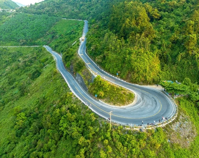 Vägen följer stundtals kusten och slingrar sig sedan upp genom Truong Son-bergen, där du korsar det spektakulära Hai Van-passet, även känt som “molnpasset”. Härifrån är utsikten inget mindre än hänförande: grönklädda berg på ena sidan och Sydkinesiska havets blå horisont på den andra.