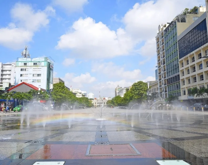 Vid skymningen kan du strosa nedför Nguyen Hue-promenaden, som omges av blommor, fontäner och stämningsfull arkitektur. Här möter du stadens kvällsliv, när lokalbefolkningen samlas tillsammans med gatukonstnärer, dansare och unga familjer i ett livligt myller. Atmosfären är både avkopplande och energisk — allt kulminerar kring det upplysta stadshuset.