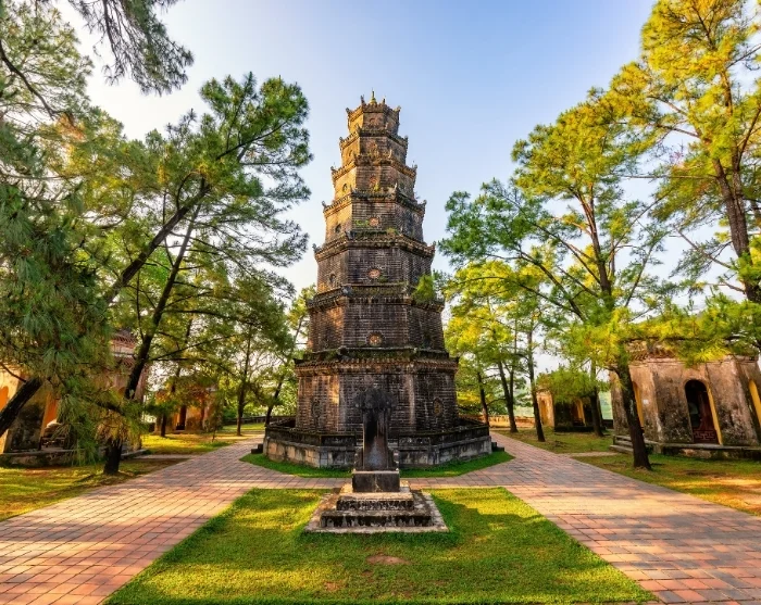 Nästa besök är Thien Mu-pagoden, Hués äldsta och mest ikoniska religiösa landmärke. Pagoden reser sig majestätiskt över Parfymfloden och har i över 400 år varit ett viktigt centrum för buddhismen i centrala Vietnam. Det åttkantiga pagodtornet reser sig mot himlen och skapar en fridfull inramning till templet och det munkkloster som fortfarande är aktivt här.