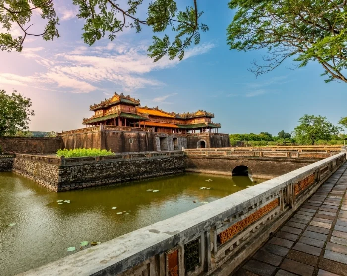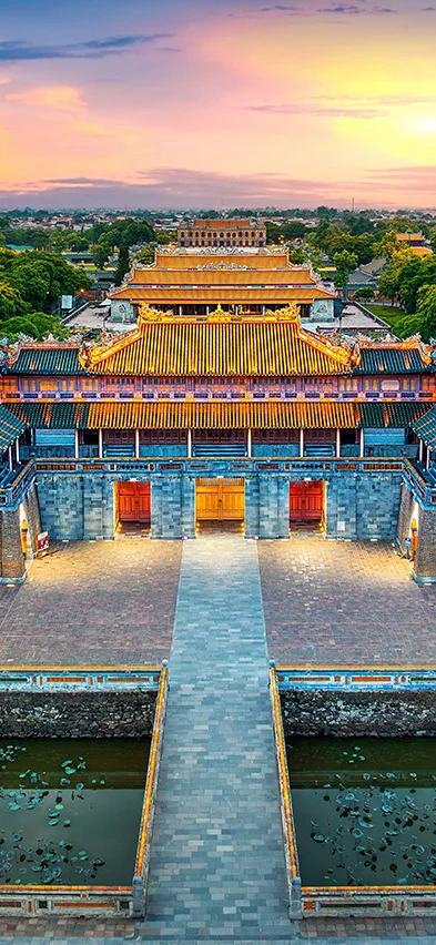 Du blir upphämtad på hotellet av din guide och dagens första stopp är den gamla kejsarstaden – en imponerande fästning som uppfördes i början av 1800-talet när Nguyen-dynastin gjorde Hué till landets huvudstad. Fästningen är omgärdad av vallgravar och massiva murar och rymmer både de tidigare administrativa byggnaderna och kejsarfamiljens bostadskvarter. Platsen är inspirerad av Den förbjudna staden i Beijing, och trots förödelsen under både Indokinakriget och Vietnamkriget står delar av palatset och de heliga salarna fortfarande kvar som bevis på forna tiders storhet. Idag har UNESCO inlett omfattande restaureringsprojekt som blåser nytt liv i det historiska komplexet.