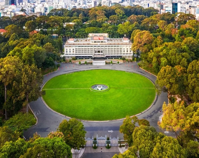 Resan går vidare till det historiska Återföreningspalatset, där Vietnamkriget – eller Amerikanska kriget, som vietnameserna kallar det – officiellt tog slut. Den 30 april 1975 bröt en nordvietnamesisk stridsvagn igenom palatsets port och satte punkt för en blodig konflikt som kostade omkring 58 000 amerikaner och hela 3 miljoner vietnameser livet. Här får du bland annat se krigsrum, festsalar och presidentens kontor.