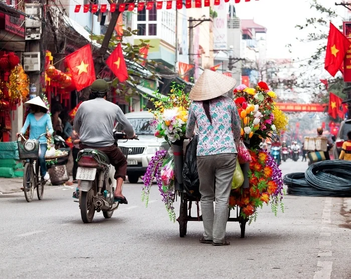 Därefter kan du fortsätta mot området vid Long Bien-bron och den närliggande Long Bien-marknaden, där handeln med frukt, grönt och blommor fyller gatorna och ger en levande inblick i stadens vardagsliv. Här är tempot högt och stämningen genuin, oavsett tid på dagen.