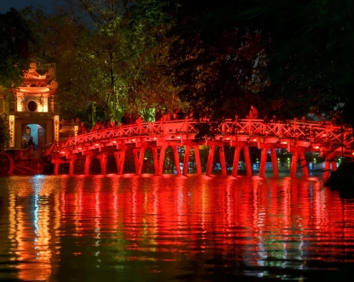 Härifrån promenerar du över den ikoniska Huc-bron till Ngoc Son-templet, som ligger mitt i den vackra Hoan Kiem-sjön. Brons namn betyder ”platsen som vidrörs av morgonsolens strålar”. Här får du höra legenden om kejsaren, det magiska svärdet och jättesköldpaddan, och får en inblick i hur sjön fått sitt namn och sin särskilda betydelse för staden.
