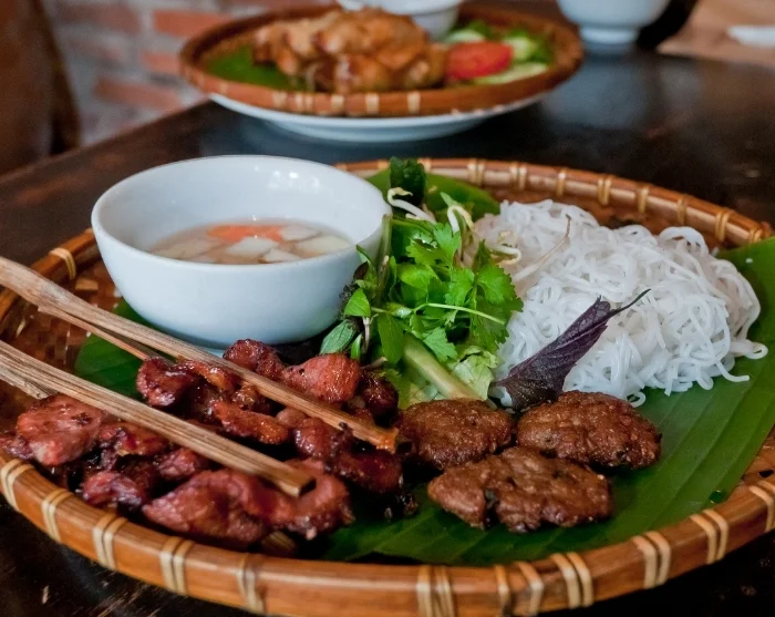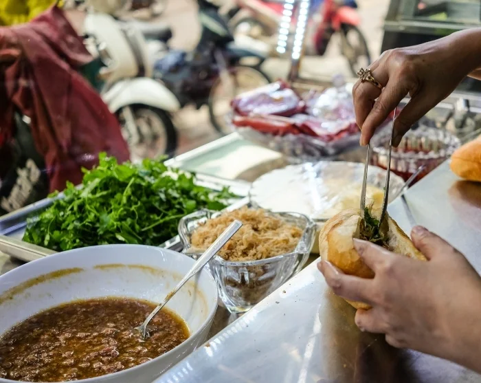 Till lunch kan du ge dig ut på jakt efter Hanois berömda gatumat. Prova en rykande skål pho, njut av doften av grillad bun cha eller ta en knaprig banh mi med dig på språng.