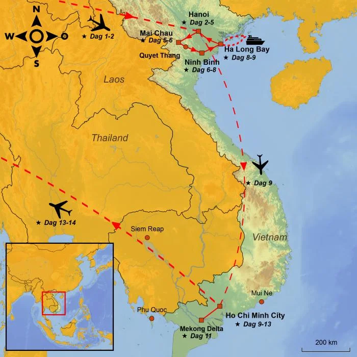 Upplev norra Vietnams charmiga stadsliv, storslagna natur och genuina byliv kombinerat med den stämningsfulla Ho Chi Minh-staden och Mekongdeltats frodiga flodlandskap.
