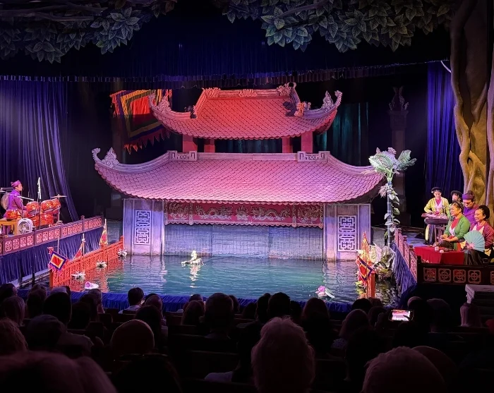 Dagens sightseeing avslutas med en föreställning i vattendockteater – en flera hundra år gammal vietnamesisk tradition där dockor dansar på vattnets yta till levande musik och klassisk berättarkonst.