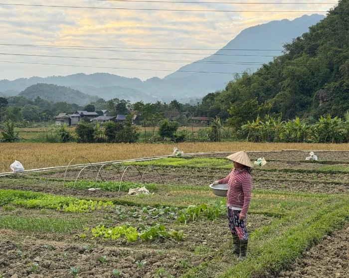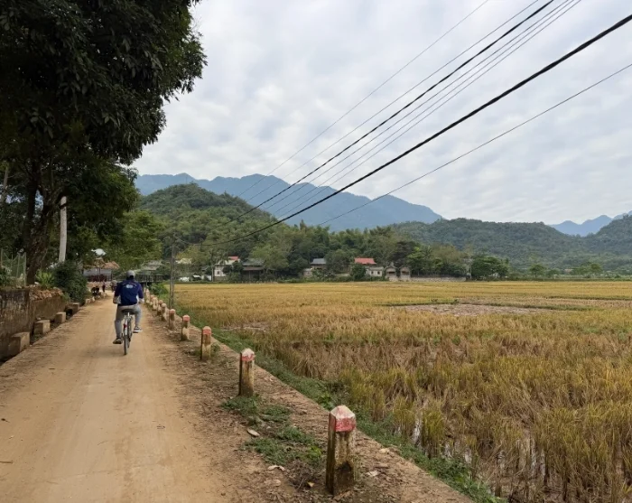 Från Hanoi går färden vidare till den idylliska Mai Chau-dalen, där du cyklar mellan risfält och små byar omgivna av gröna berg. Härifrån fortsätter du till Quyet Thang, där du besöker ett av våra sociala hållbarhetsprojekt som bidrar till bättre levnadsvillkor för lokalbefolkningen.