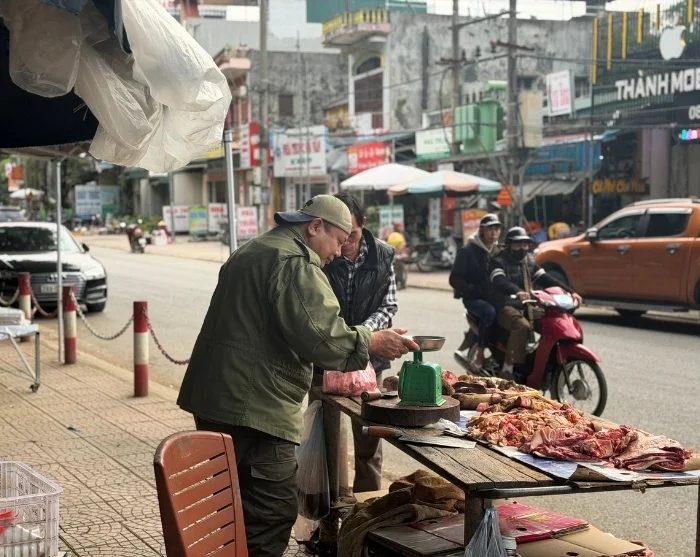 Cykelturen fortsätter till en lokal familj i byn Mai Trung, där du välkomnas i hemtrevliga omgivningar. Här får du en inblick i livet på landsbygden när du deltar i säsongsbetonade sysslor som arbete i risfälten, trädgårdsarbete eller matning av fiskar och fjäderfä.