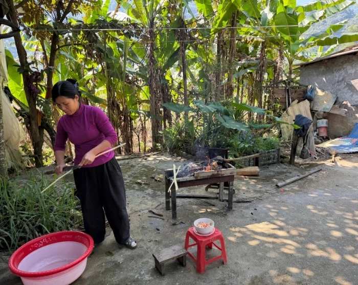 Därefter besöker du ett äldre par och får inblick i Muong-folkets gamla hantverkstraditioner inom vävning och bambuflätning, som har förts vidare genom generationer. Bambusorten luong används bland annat för att tillverka korgar, fiskfällor och mattor. Varje mönster och teknik speglar en del av Muong-folkets kulturarv, och produkterna fungerar både som hållbara alternativ till moderna material och som unika souvenirer. Du får själv möjlighet att prova på hantverket och fläta din egen lilla korg som du kan ta med dig hem som minne.