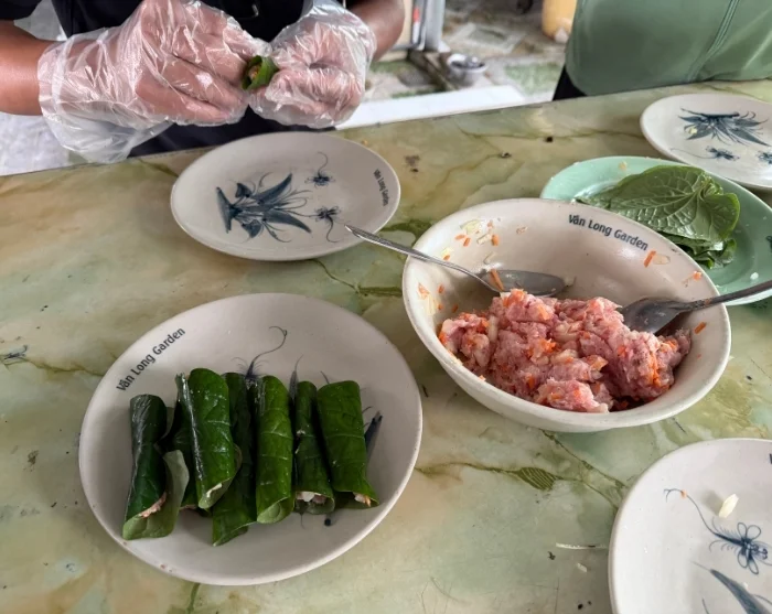 Båtturen tar dig vidare till en fridfull ö mitt i Mekongfloden, där du njuter av en vietnamesisk lunch tillagad av färska, lokala råvaror, omgiven av grönska och flodens stilla rytm.