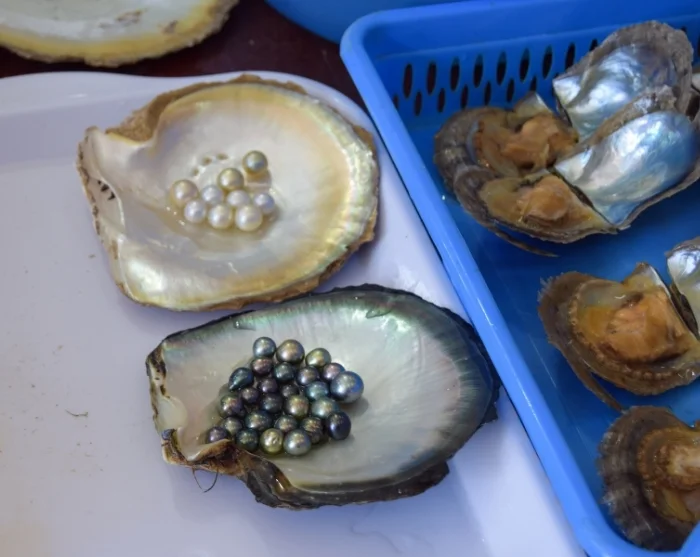 Senare lägger båten till vid en lokal pärlfarm, där du får en inblick i den traditionella pärlodlingen.