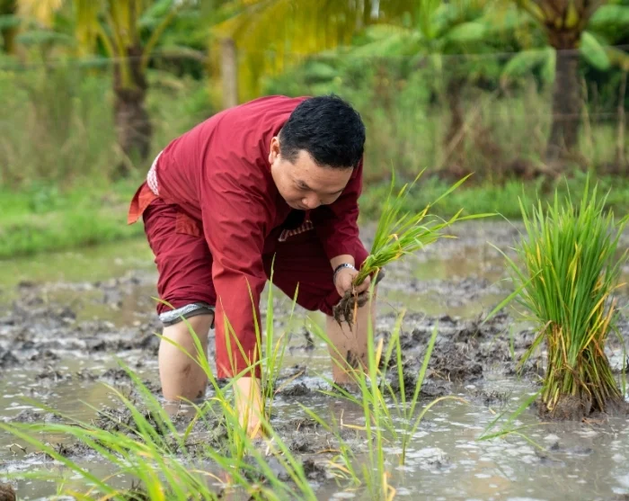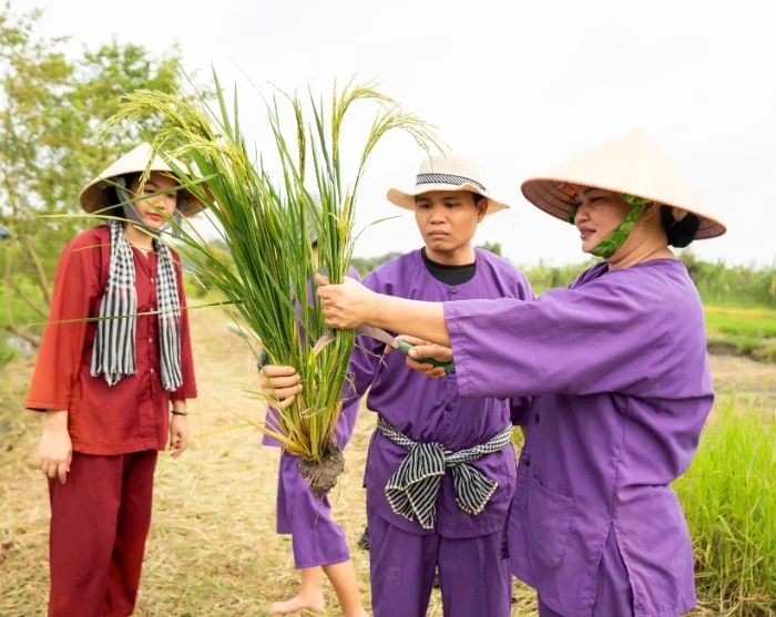 Du reser vidare till vårt hållbarhetsprojekt i Vinh Long, som har startats av vår lokala samarbetspartner. En stillsam promenad genom byn väntar, där din guide under tiden ger dig inblick i projektets syfte. Du får också möjlighet att själv ta del av det traditionella lantbrukslivet. Tillsammans med lokala bönder kan du prova på risodling – antingen genom att plantera späda risplantor eller genom att hjälpa till vid skörden, beroende på säsong. Det är en lärorik och jordnära upplevelse som ger dig en unik inblick i vardagen på Vietnams landsbygd och i arbetet bakom ett hållbart jordbruk. När du deltar i utflykten bidrar du samtidigt till familjerna i Vinh Long, eftersom en del av resans pris går direkt till projektet, som du kan läsa mer om här.