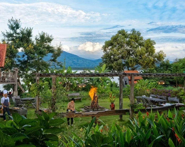 Tillbaka på Lak Tented Camp väntar en stämningsfull kväll med traditionell gongmusik, lokalt risvin (Ruou Can) och en utsökt BBQ-middag vid lägerelden innan du drar dig tillbaka för natten.