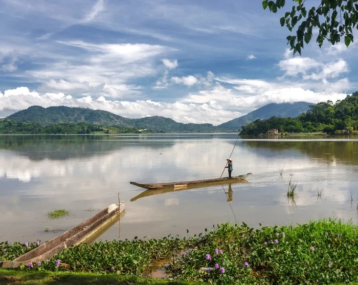 Resan fortsätter till Lak Lake – den största naturliga sötvattensjön i Vietnams centrala högland, som ligger ungefär 50 km söder om Buon Ma Thuot. Sjön omges av grönskande kullar, risfält och små byar där M’nongfolket bor och lever enligt gamla traditioner. Här har du möjlighet att uppleva den rofyllda naturen, det rika fågellivet och den lokala kulturen på nära håll.