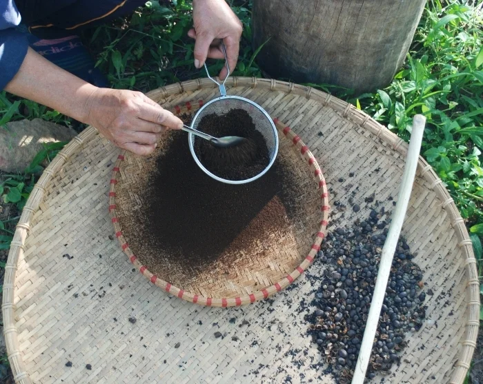 Efteråt tar du en båt tillbaka till Lak Tented Camp, där du utforskar campens frodiga trädgårdar och får en inblick i M’nong-folkets rika kaffekultur. Du lär dig om de traditionella tillverkningsmetoderna och kan njuta av den genuina smaken av nyrostade, närodlade bönor.