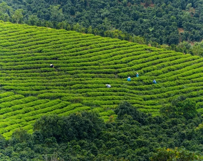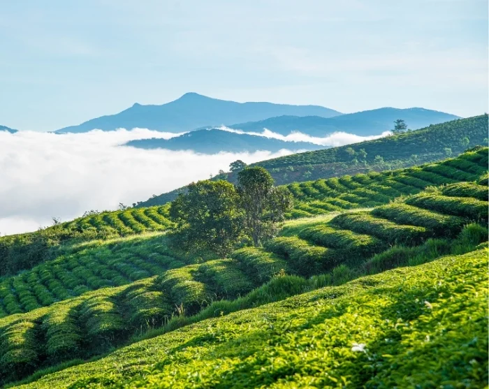 Dagen inleds med en tågtur till Trai Mat, där du under resan kan njuta av panoramautsikten över Da Lats böljande landskap. Efter ankomsten till Trai Mat utforskar du de omgivande miljöerna innan färden fortsätter till teplantagen Cau Dat, där de gröna tebuskarna breder ut sig så långt ögat når. Här får du lära dig om processen bakom tetillverkning och njuta av en nybryggd kopp te medan du tar in det storslagna landskapet i höglandet.