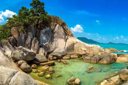 Som standard bor du på Koh Samuis norra kust i den lugna och idylliska strandbyn Mae Nam, som erbjuder en lugn och fridfull atmosfär med en vacker honungsfärgad strand. Stranden är inte så bred, men vattnet är lugnt och har en behaglig temperatur. Mae Nam ligger intill Bophut, som är känd för sin vackra vik med gyllene sandstränder och lugnt vatten. Här hittar du också Fisherman’s Village – ett charmigt område med en mängd små butiker med lokal konst och hantverk, barer och, inte minst, restauranger med läcker mat.