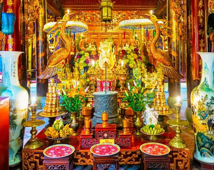 Ni kommer också att stanna till vid det lilla templet Bach Ma, som ligger i Hanois gamla kvarter. Templet sägs vara Hanois äldsta, och det uppfördes av kejsaren Ly Thai To för att hedra sin vita häst, som spelade en central roll i grundandet av Hanoi. Templet är känt för sin traditionella vietnamesiska arkitektur, med imponerande träsniderier och intrikata detaljer.