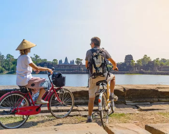 Du lämnar Vietnam och flyger vidare till den charmiga staden Siem Reap i Kambodja. Här kan du ta en promenad i det franska kvarteret med dess charmiga gamla hus, eller längs stadens flod, där du hittar härliga kaféer och bra restauranger. Du får uppleva världens åttonde underverk Angkor Wat under en morgoncykeltur och det lokala livet på en härlig båttur på sjön Tonlé Sap.