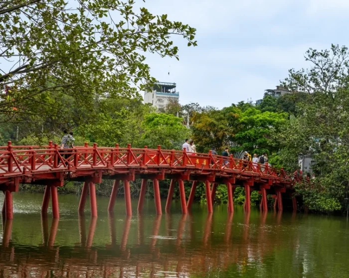 Härifrån promenerar du över den ikoniska Huc-bron till Ngoc Son-templet, som ligger mitt i den vackra Hoan Kiem-sjön. Brons namn betyder ”platsen som vidrörs av morgonsolens strålar”. Här får du höra legenden om kejsaren, det magiska svärdet och jättesköldpaddan, och får en inblick i hur sjön fått sitt namn och sin särskilda betydelse för staden.