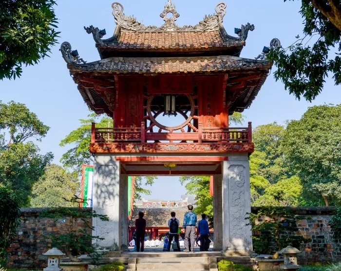 Efteråt körs du till Litteraturens tempel, ett fridfullt tempelkomplex som uppfördes på 1100-talet av elever till den kinesiske filosofen Konfucius. Med nästan 1 000 år bakom sig är templet ett sällsynt och välbevarat exempel på traditionell vietnamesisk arkitektur, komplett med pelargångar, dammar och gröna innergårdar där unga studenter än idag kommer för att be om tur inför sina tentor.