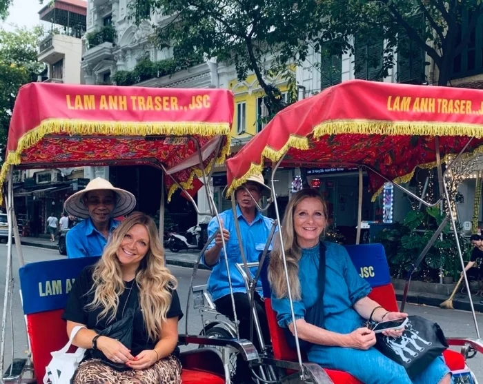 Turen fortsätter med en traditionell cykeltaxi – även kallad cyclo – genom det gamla kvarterets labyrint av smala gator och livlig handel. Det gamla kvarteret är känt för sina 36 gator som ursprungligen fick sina namn efter de varor som såldes här: bambu, siden, papper och plåt. Idag lever många av gatunamnen vidare och stämningen sprudlar av lokal charm där invånarna i Hanoi fortfarande handlar, småpratar och serverar rykande het pho från gatuköken.