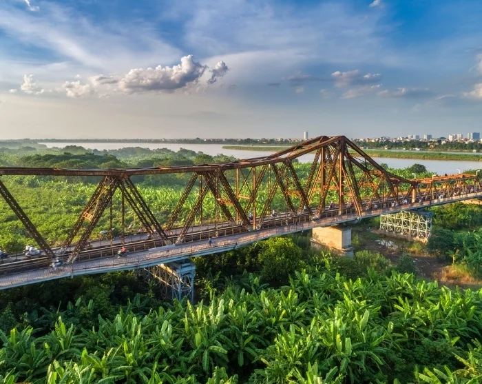 Efter en spännande cyklotur besöker du den historiska Long Bien-bron – ett ikoniskt landmärke från den franska kolonialtiden, uppförd i början av 1900-talet. Den karaktäristiska järnbron sträcker sig över Röda floden och skadades svårt under Vietnamkriget, men står idag som en stark symbol för Hanois motståndskraft. Bron är reserverad för tåg, cyklister och fotgängare och bjuder på en stämningsfull upplevelse. Här kan du träffa lokalbor som cyklar till jobbet eller säljer frukt vid spåren och njuta av utsikten över gröna små flodöar med odlade marker mitt i storstaden – ett populärt motiv för både fotografer och resenärer som vill fånga Hanois själ.