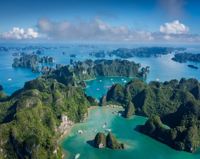 Ha Long-bukten är ett av Vietnams mest unika naturområden. Här reser sig hundratals grönklädda kalkstensklippor lodrätt ur havet, som under årets lopp skiftar färg från djupblått till jadegrönt. På den största ön, Cat Ba, ligger flera byar, medan några av de mindre öarna är hem för små fiskesamhällen. För resenärer är Ha Long-bukten framför allt ett fantastiskt naturskådespel i världsklass, men för vietnameserna är det också en plats insvept i draklegender och dramatik. Bukten täcker ett område på cirka 1 500 km² och upptogs på UNESCOs världsarvslista 1994.