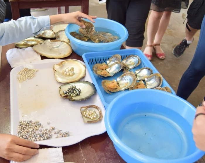 Senare lägger båten till vid en lokal pärlodling, där du får inblick i traditionell pärlodling. Här har du också möjlighet att hoppa i en kajak och lugnt paddla genom det vackra landskapet.