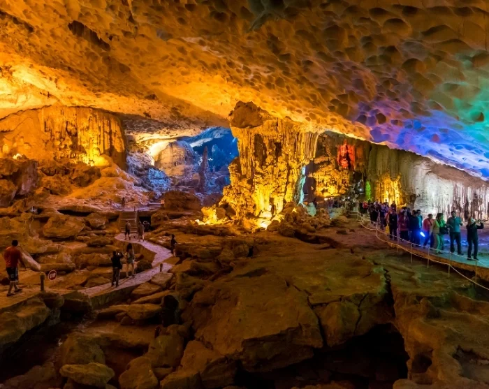 Resan fortsätter till Sung Sot-grottan, Ha Long-buktens största och mest imponerande droppstensgrotta. Här belönas du med ett magiskt inre landskap av stalaktiter och stalagmiter som formats under miljontals år. Vi rekommenderar rejäla, slutna skor, särskilt vid vått väder.