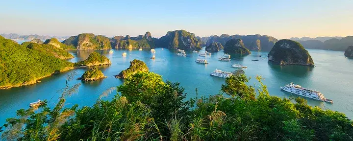 Från Hanoi fortsätter resan österut till Ha Long-bukten där du åker på en minikryssning bland kalkstensklippor. Du besöker Ti Top Island, med möjlighet till ett uppfriskande dopp och en utsikt från öns topp, utforskar en imponerande droppstensgrotta, övernattar ombord och vaknar till morgonljus som glittrar över det smaragdgröna vattnet.