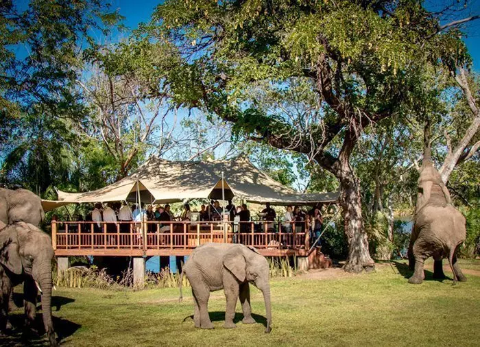 Vid Zambeziflodens bredd, 10 kilometer från Livingstone, ligger Elephant Café. Här bor 10 elefanter, som av olika anledningar inte längre har en egen flock. Några av elefanterna har räddats från tjuvjägare, och andra är födda i fångenskap och kan inte överleva i den fria naturen. Elephant Camp är deras hem. De lever i princip fritt och kan gå vart de vill, men de känner alla en stark anknytning till sina djurskötare, och även om de dagligen går på strövtåg i bushen kommer de alltid tillbaka.