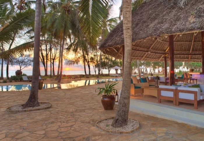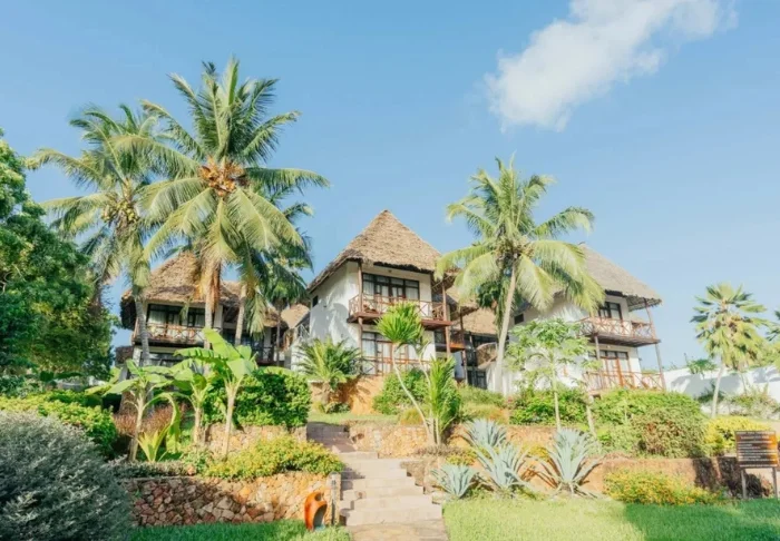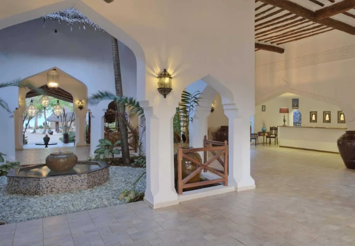 Det familjeägda hotellet är inrett i klassisk Zanzibarstil, har egen privat strand och ligger i en stor botanisk trädgård, där det finns över 3 000 exotiska växter, blommor och träd.