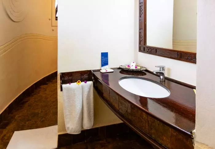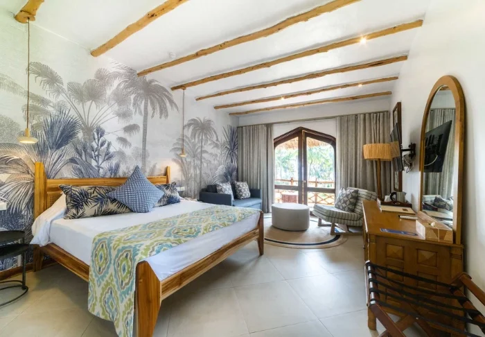 Hotellet är inspirerat av Zanzibars afrikanska hjärta och öns arabiska historia. Rummen är 45 m² stora och alla har en 12 m² stor balkong eller terrass, där du får en fantastisk utsikt över trädgården och den Indiska oceanen. Rummen har en modern inredning i varma jordfärger med en afrikansk touch. Alla rum har himmelsäng med myggnät, luftkonditionering, takfläkt, telefon, tv, Wi-Fi, minibar, säkerhetsbox, CD- och DVD-spelare samt kaffe- och tekokare.